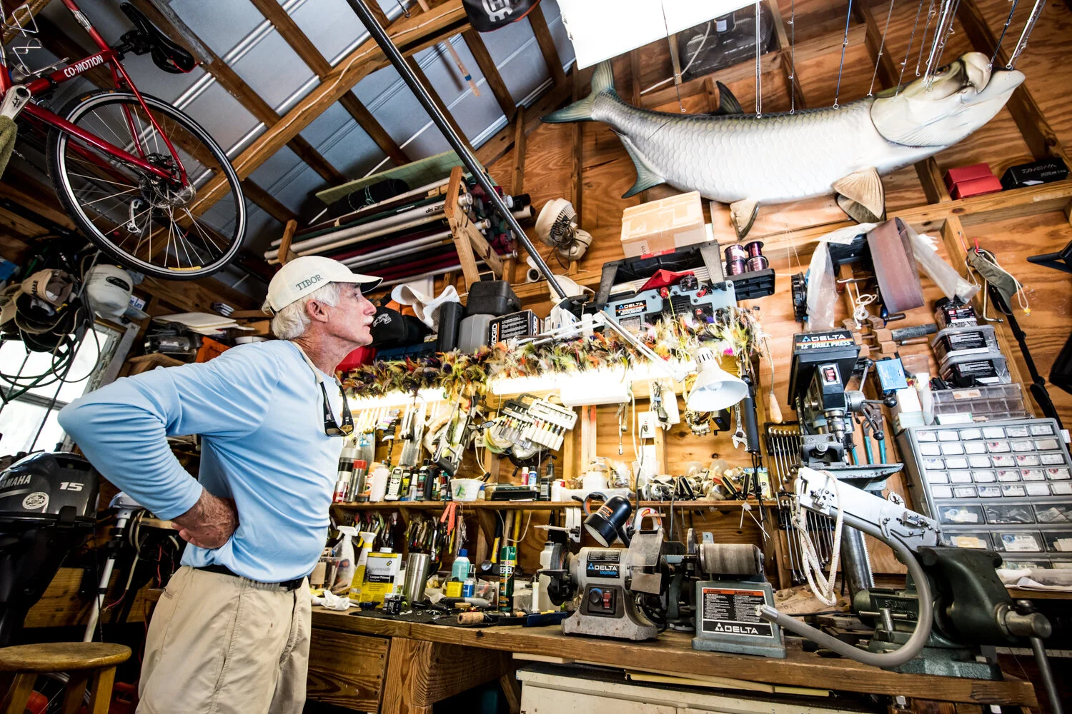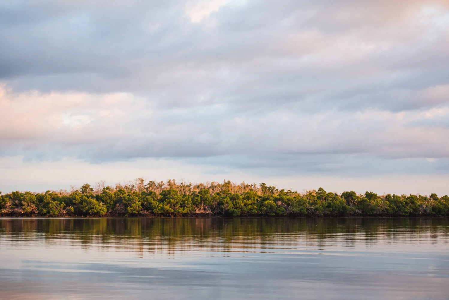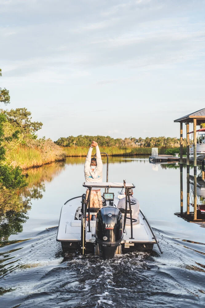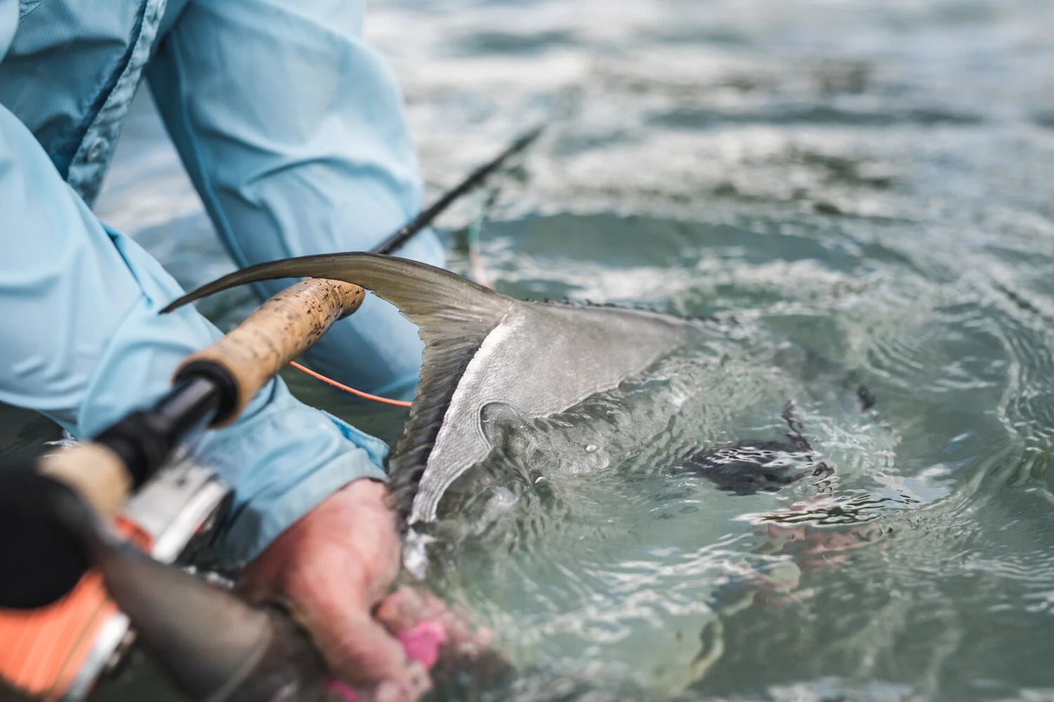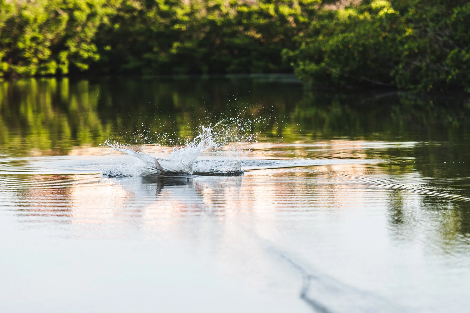 Driving south, on the Tamiami Trail, the patches of fog and stagnant air signal that’s its going to be a good tarpon day. There is a smell in the air during tarpon season that is humid, sweet, and salty all at the same time. Everything is lining up, the water temperature, air temperature, and weather. It is early April in Everglades City, just four days after a cold front, but the water is 75 degrees and warming by the minute. I know the fish have to be flowing into the bays right now. The push poles slides me quietly into a bay, as I scan looking for signs of life. Bloop, the distinct sound of a tarpon rolling. They’re here.
